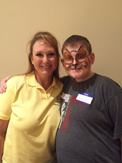 We spoke for about 10 minutes and then more people came up and she needed to speak to them. Elijah and I visited several more tables and we got to see the wireless accessories that he can use with this cochlear implant processor. I got to ask lots of questions about which accessory might work best for him. He got his face painted and he also got some balloon animals! They served us lunch and we ate with some very nice people who also had cochlear implants. Of course, everyone thought Elijah was too cute as he ate his chocolate chip cookies and then asked for more!